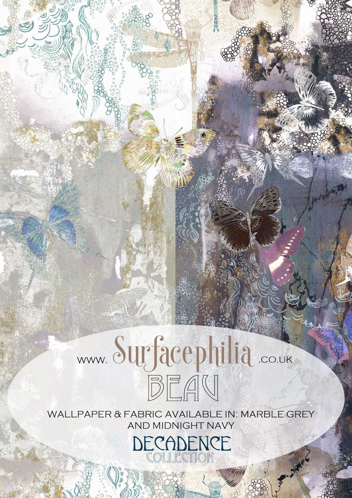 For the first time, this coming Friday on Facebook I will be previewing Surfacephilia's next collection Decadence. The collection will be launching at the Home-London show on 12th January and will be available to buy straight after. The collection includes wallpaper, china and for the first time fabrics! Cushions coming this Spring!